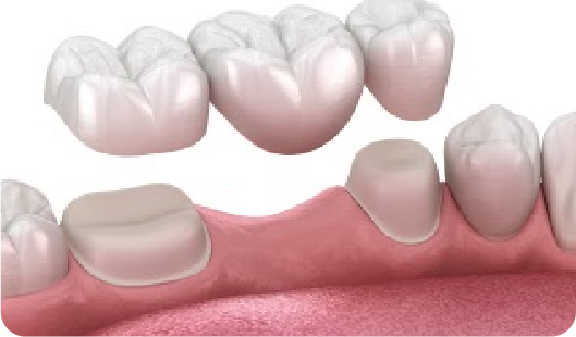 ブリッジは、歯を失った場合に、残っている歯を土台として人工歯を装着する治療法です。
