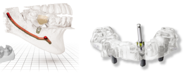 手術計画を立案 - デジタルシミュレーションを使用し、インプラント手術位置を設定し、そのまま手術ができるようにひとりひとりの患者様に合ったOneGuideを製作します。