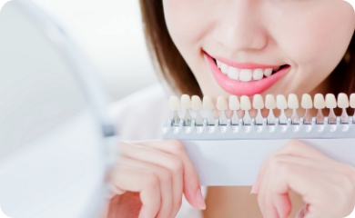 食事や喫煙などにより、歯の表面には着色汚れが付着することがあります。これらの着色はクリーニングで除去できますが、加齢などにより歯の内側から着色したものは、クリーニングでは落とすことができません。