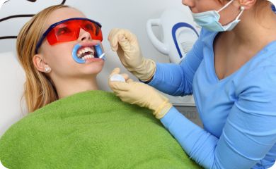 クリニック内で専門の歯科技師や歯科衛生士が行うホワイトニングのことです。まず、歯の表面をクリーニングし、その後、専用のホワイトニング剤を塗布します。歯にライトを当てて薬剤を浸透させ、歯の色を明るくします。この方法は短時間で施術を実施できるため、忙しい方や即効性を求める方に特におすすめです。